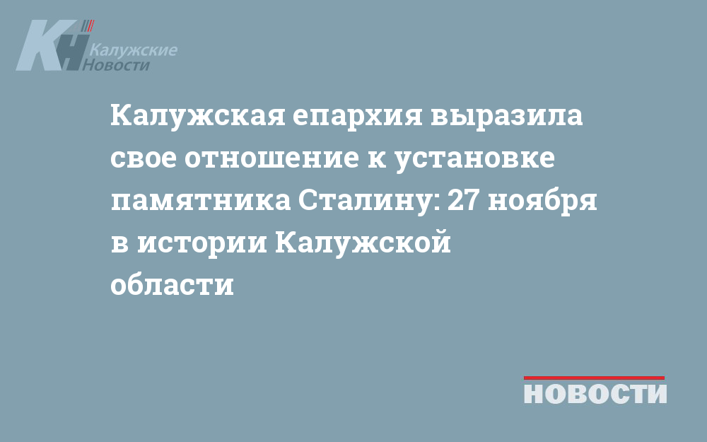 Калужская епархия выразила свое отношение к установке памятника Сталину: 27 ноября в истории Калужской области