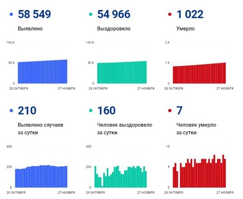 Согласно представленным данным, всего в нашем регионе было выявлено 58 549 случаев заболевания, из них 210 зафиксировали за последние сутки.